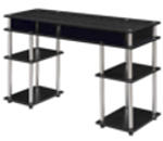 But modern furniture manufacturers like Convenience Concepts decided to offer student desks for the home that can be assembled without any tool. This company has a collection of such furniture pieces that combine wooden shelves and poles made of stainless steel to create functional and appealing products.