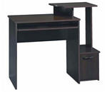 The design of the small student desk is elegant and simple at the same time. There is a cinnamon cherry finish to match a variety of interiors and you can see all the necessary shelves to fit the computer parts: